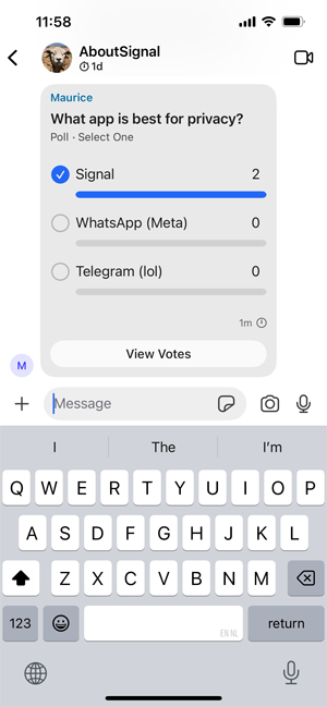 Peilingen in Signal zijn momenteel nog in ontwikkeling maar worden binnenkort voor iedereen beschikbaar.